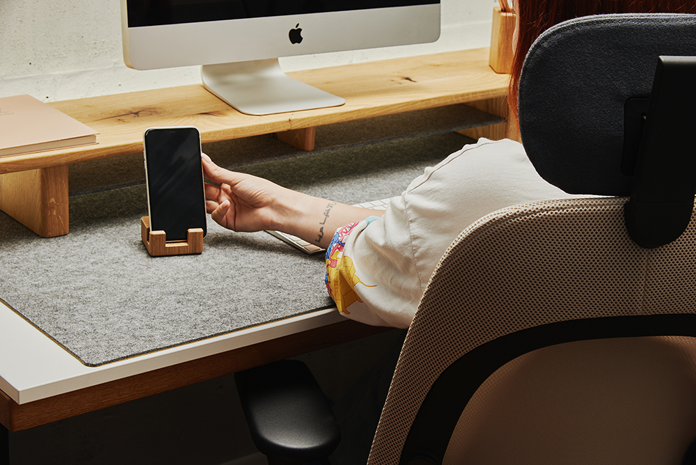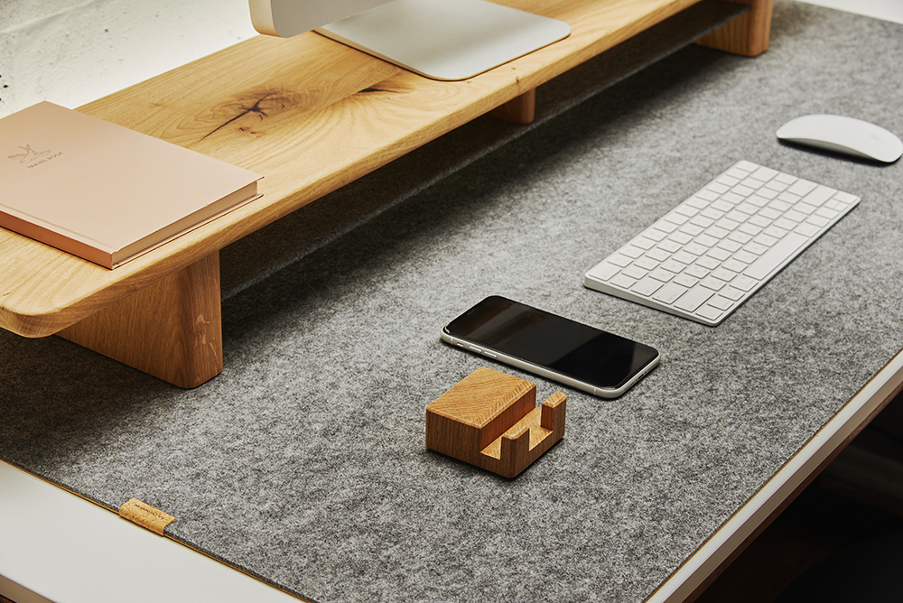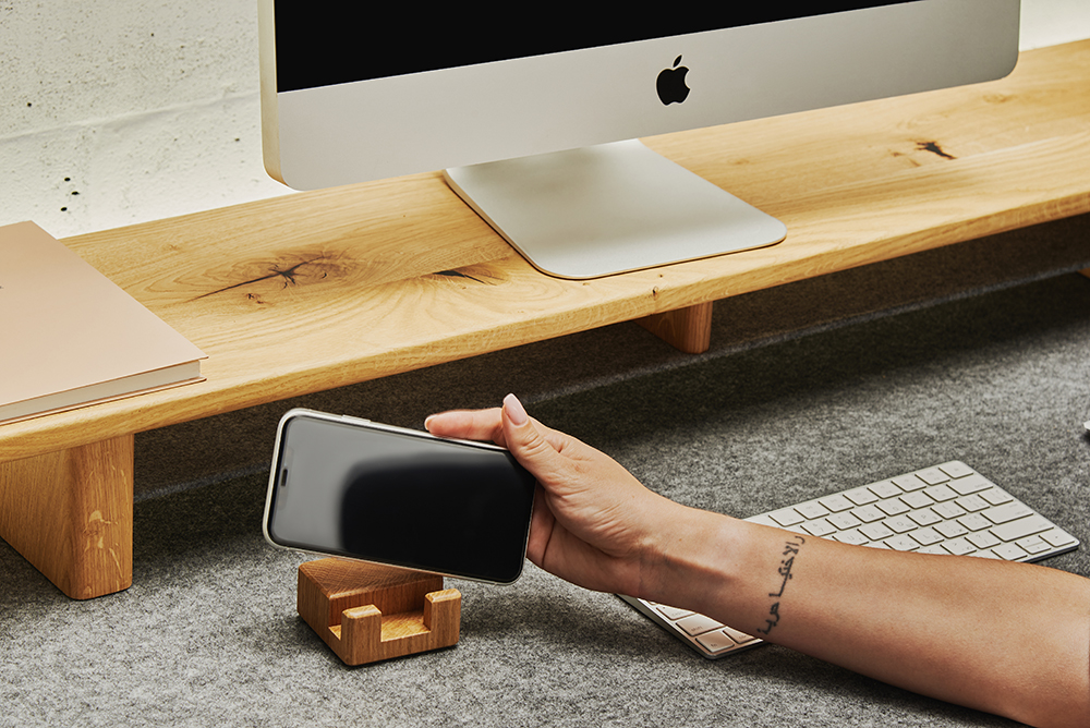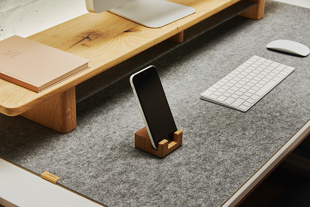 Утримувати телефон у зручному положенні під час роботи зовсім не обов’язково власноруч: для цього легше використовувати спеціальну підставку. Виготовлений з природного масиву дуба, завдяки своєму мінімалістичному дизайну аксесуар стане вдалим доповненням вашого інтер’єру. Знизу підставка оснащена корковою підкладкою, за рахунок чого зберігає стійкість, а при пересуванні не завдає пошкоджень робочій поверхні.